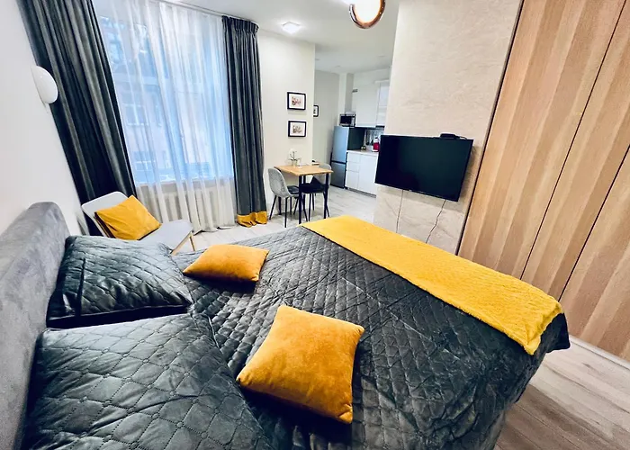 Komplette Küche ist ebenfalls vorhanden, ebenso wie eine Mikrowelle, ein Wasserkocher und ein Kühlschrank. Das Restaurant Bezglutēna Produktu Kafejnīca Skudru Pūznis serviert russische Gerichte und liegt 5 Minuten Gehweg von hier entfernt. Die nächstgelegene Bushaltestelle Lacplesa iela ist in der Entfernung von 100 Metern.